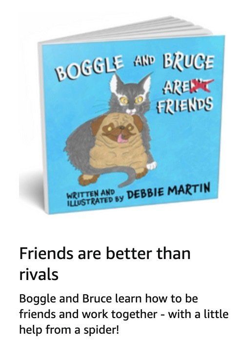 Boggle the cat and Bruce the pug don’t get along. Boggle thinks he should be boss because he’s such a smart cat, and Bruce thinks he should be top dog because – well, just because!